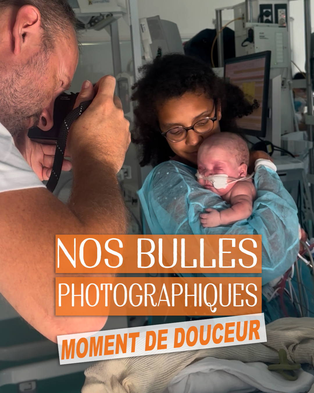 Nous avons innové avec les Bulles Photographiques où sont réunis les deux parents et leur nourrisson malade ou prématuré. nous favorisons ainsi la consolidation du lien maternel ou paternel parfois abîmé par l’épreuve qu’ils traversent.